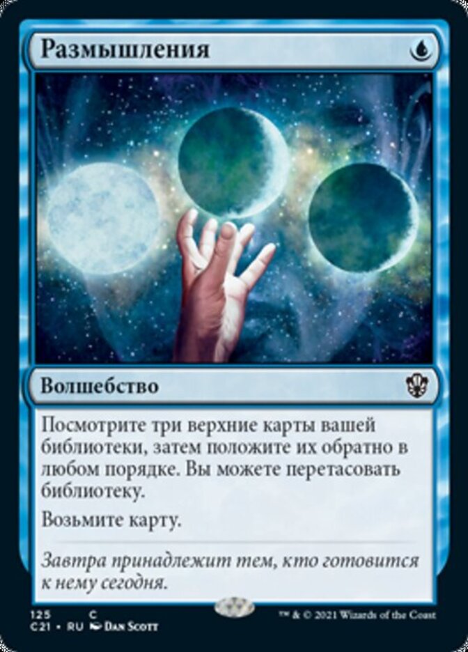 | Rules | Look at the top three cards of your library, then put them back in any order. You may shuffle. Draw a card. |