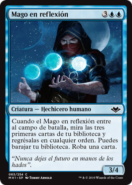 | Rules | When Pondering Mage enters the battlefield, look at the top three cards of your library, then put them back in any order. You may shuffle. Draw a card. |