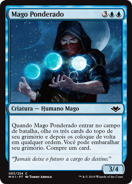 | Rules | When Pondering Mage enters the battlefield, look at the top three cards of your library, then put them back in any order. You may shuffle. Draw a card. |