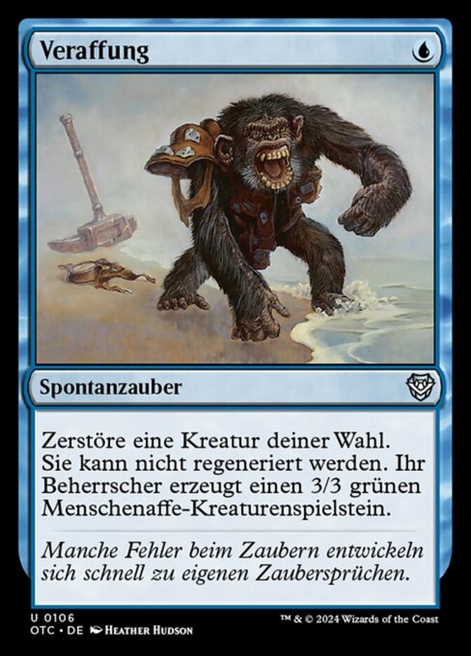 | Rules | Destroy target creature. It can't be regenerated. Its controller creates a 3/3 green Ape creature token. |