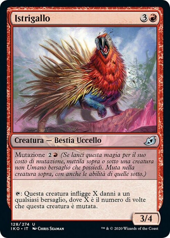 | Rules | Mutate (If you cast this spell for its mutate cost, put it over or under target non-Human creature you own. They mutate into the creature on top plus all abilities from under it.) : This creature deals X damage to any target, where X is the number of times this creature has mutated. |