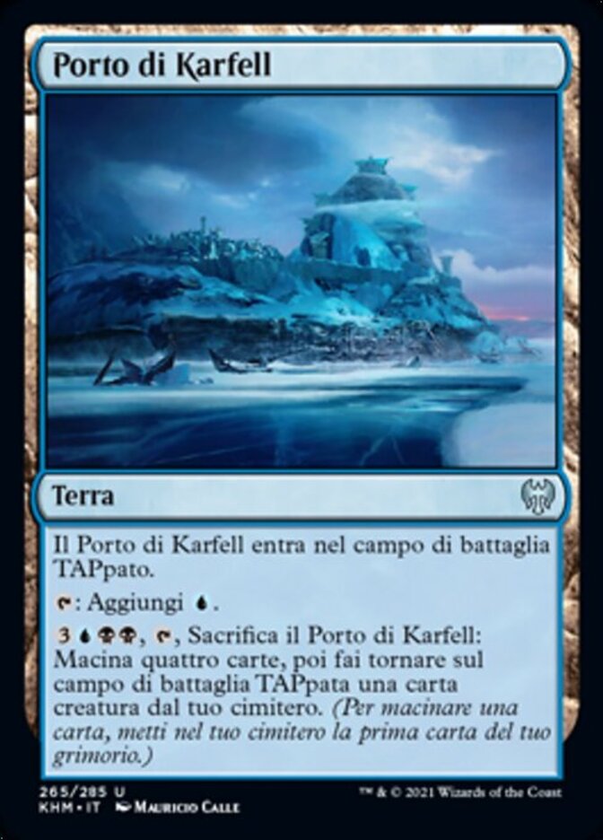 | Rules | Port of Karfell enters the battlefield tapped. : Add . , , Sacrifice Port of Karfell: Mill four cards, then return a creature card from your graveyard to the battlefield tapped. (To mill a card, put the top card of your library into your graveyard.) |