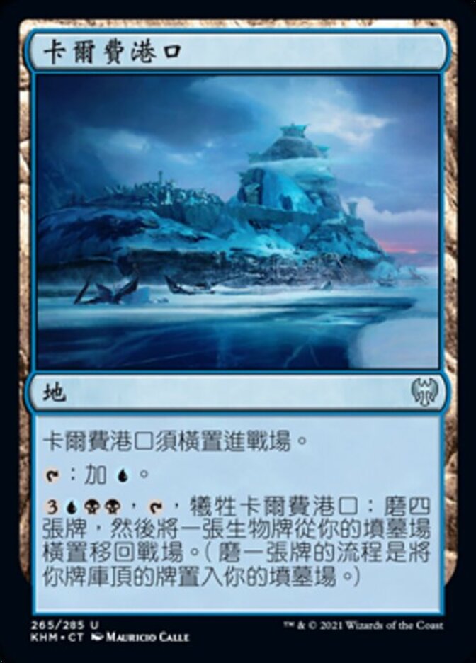 | Rules | Port of Karfell enters the battlefield tapped. : Add . , , Sacrifice Port of Karfell: Mill four cards, then return a creature card from your graveyard to the battlefield tapped. (To mill a card, put the top card of your library into your graveyard.) |