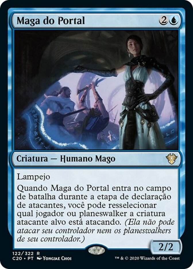When Portal Mage enters the battlefield during the declare attackers step, you may reselect which player or planeswalker target attacking creature is attacking. (It can't attack its controller or its controller's planeswalkers.)