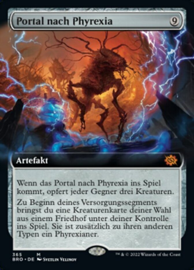 | Rules | When Portal to Phyrexia enters the battlefield, each opponent sacrifices three creatures. At the beginning of your upkeep, put target creature card from a graveyard onto the battlefield under your control. It's a Phyrexian in addition to its other types. |
