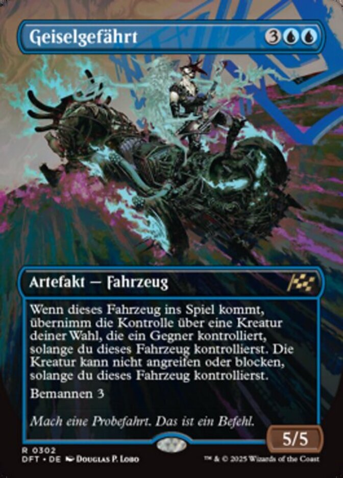 | Rules | When this Vehicle enters, gain control of target creature an opponent controls for as long as you control this Vehicle. That creature can't attack or block for as long as you control this Vehicle. Crew 3 |