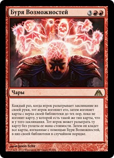 | Rules | Whenever a player casts a spell from their hand, that player exiles it, then exiles cards from the top of their library until they exile a card that shares a card type with it. That player may cast that card without paying its mana cost. Then they put all cards exiled with Possibility Storm on the bottom of their library in a random order. |