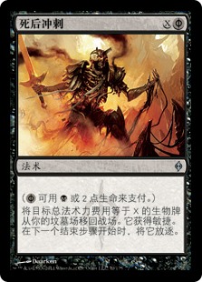 | Rules | ( can be paid with either or 2 life.) Return target creature card with mana value X from your graveyard to the battlefield. It gains haste. Exile it at the beginning of the next end step. |