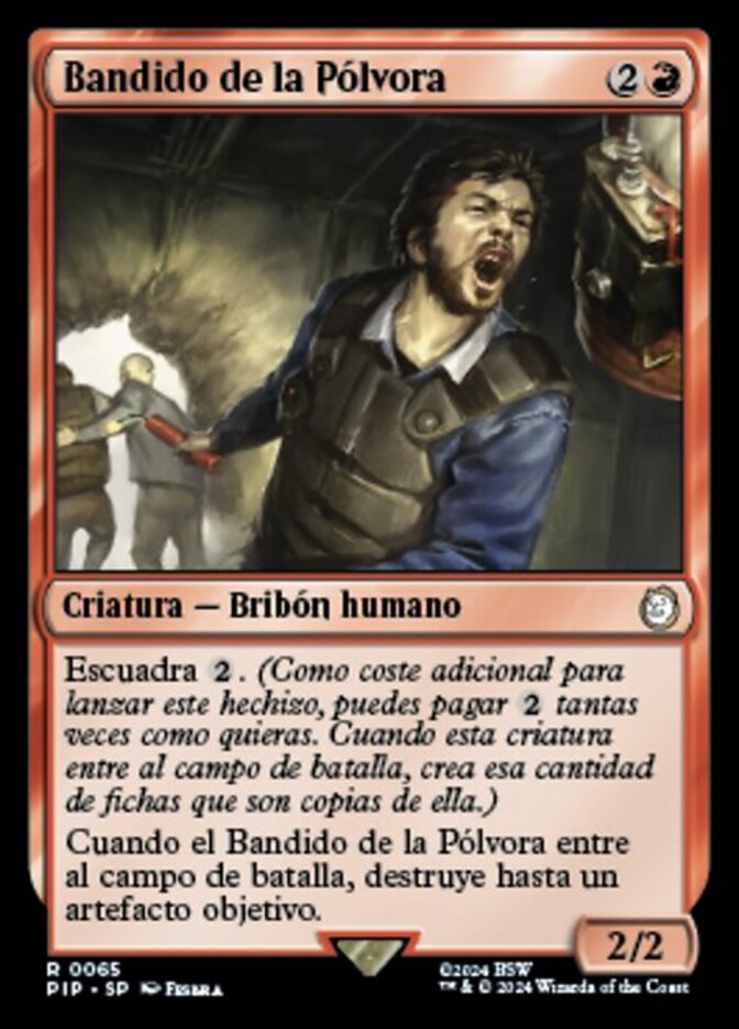 | Rules | Squad (As an additional cost to cast this spell, you may pay any number of times. When this creature enters the battlefield, create that many tokens that are copies of it.) When Powder Ganger enters the battlefield, destroy up to one target artifact. |