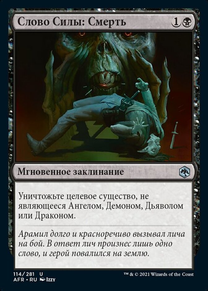 | Rules | Destroy target non-Angel, non-Demon, non-Devil, non-Dragon creature. |