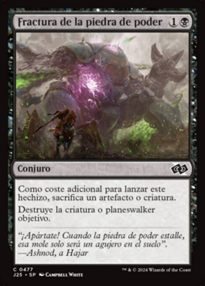 | Rules | As an additional cost to cast this spell, sacrifice an artifact or creature. Destroy target creature or planeswalker. |