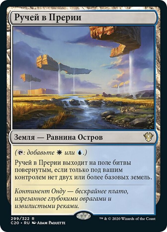 | Rules | (: Add or .) Prairie Stream enters the battlefield tapped unless you control two or more basic lands. |