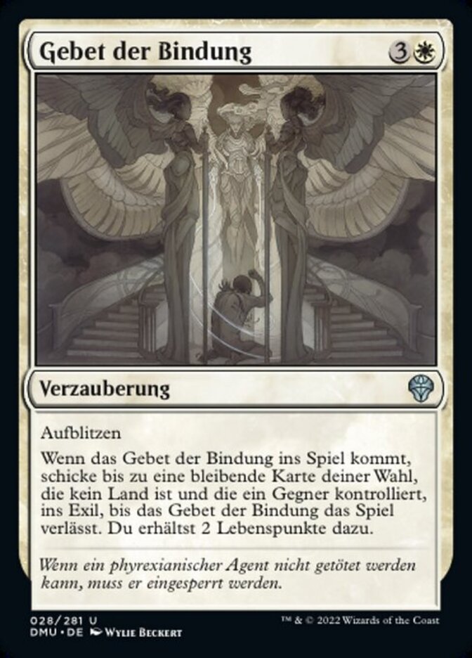 | Rules | Flash When Prayer of Binding enters the battlefield, exile up to one target nonland permanent an opponent controls until Prayer of Binding leaves the battlefield. You gain 2 life. |