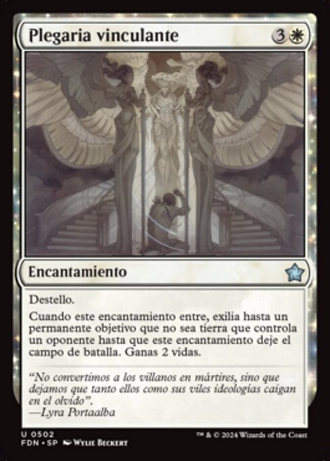 | Rules | Flash When Prayer of Binding enters the battlefield, exile up to one target nonland permanent an opponent controls until Prayer of Binding leaves the battlefield. You gain 2 life. |