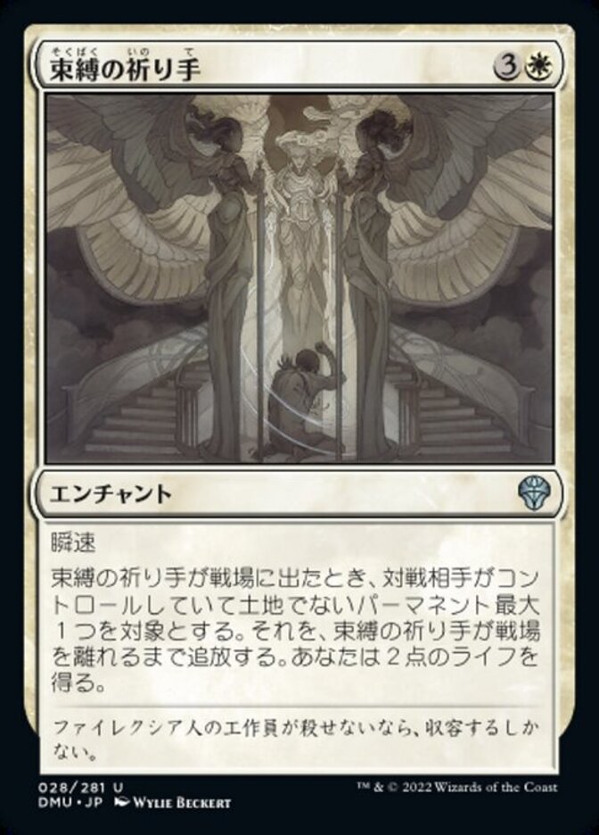 | Rules | Flash When Prayer of Binding enters the battlefield, exile up to one target nonland permanent an opponent controls until Prayer of Binding leaves the battlefield. You gain 2 life. |
