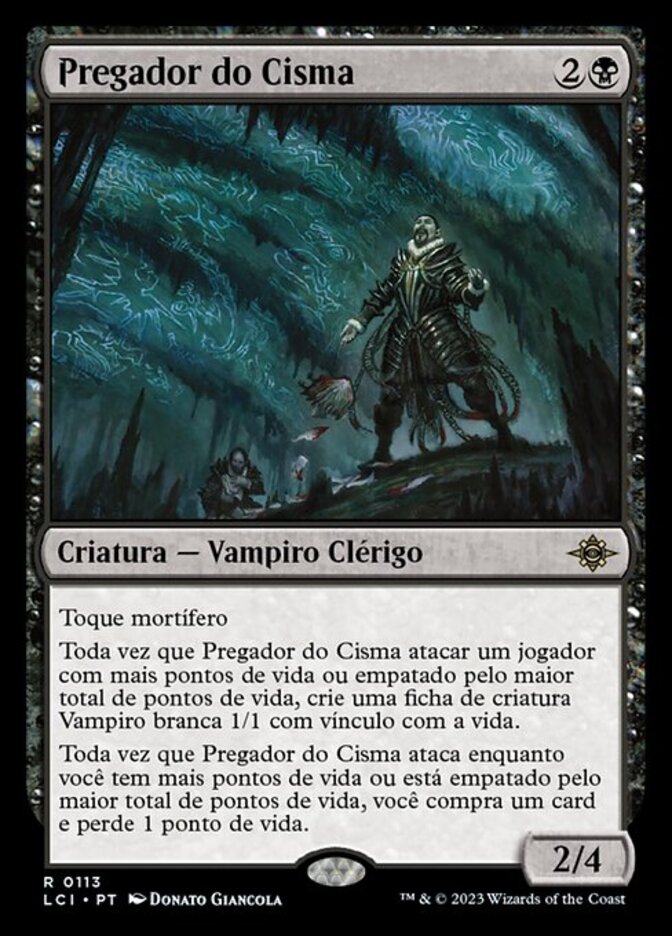 | Rules | Deathtouch Whenever Preacher of the Schism attacks the player with the most life or tied for most life, create a 1/1 white Vampire creature token with lifelink. Whenever Preacher of the Schism attacks while you have the most life or are tied for most life, you draw a card and you lose 1 life. |