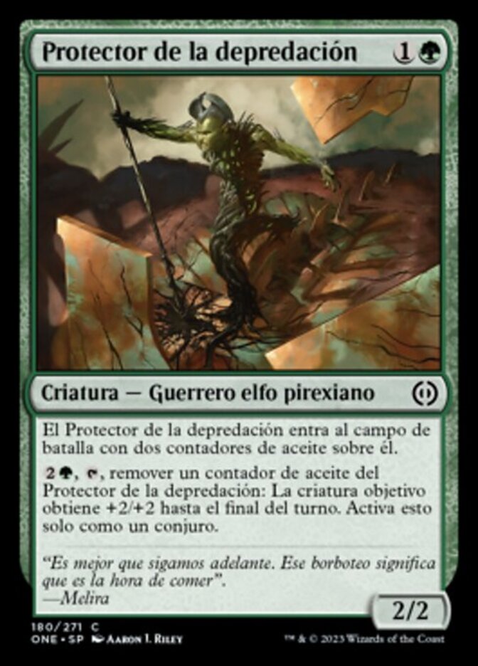 | Rules | Predation Steward enters the battlefield with two oil counters on it. , , Remove an oil counter from Predation Steward: Target creature gets +2/+2 until end of turn. Activate only as a sorcery. |