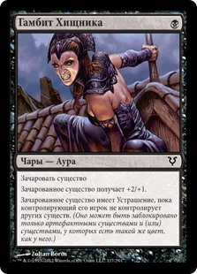 | Rules | Enchant creature Enchanted creature gets +2/+1. Enchanted creature has intimidate as long as its controller controls no other creatures. (It can't be blocked except by artifact creatures and/or creatures that share a color with it.) |