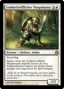 | Rules | First strike (This creature deals combat damage before creatures without first strike.) Whenever Preeminent Captain attacks, you may put a Soldier creature card from your hand onto the battlefield tapped and attacking. |