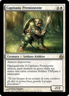 | Rules | First strike (This creature deals combat damage before creatures without first strike.) Whenever Preeminent Captain attacks, you may put a Soldier creature card from your hand onto the battlefield tapped and attacking. |