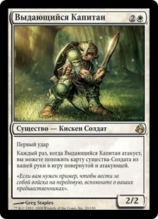 | Rules | First strike (This creature deals combat damage before creatures without first strike.) Whenever Preeminent Captain attacks, you may put a Soldier creature card from your hand onto the battlefield tapped and attacking. |