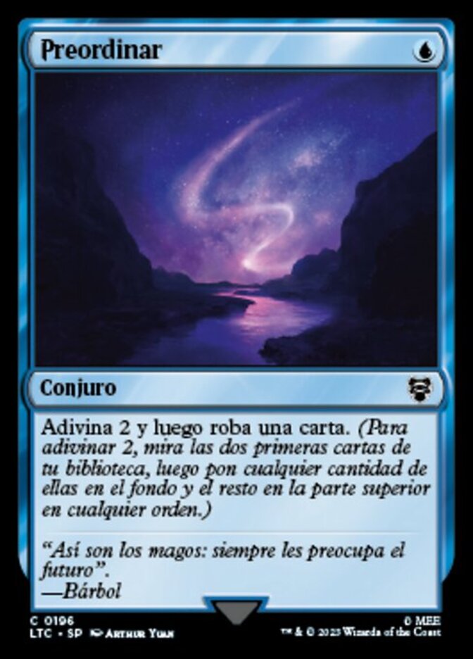 | Rules | Scry 2, then draw a card. (To scry 2, look at the top two cards of your library, then put any number of them on the bottom of your library and the rest on top in any order.) |
