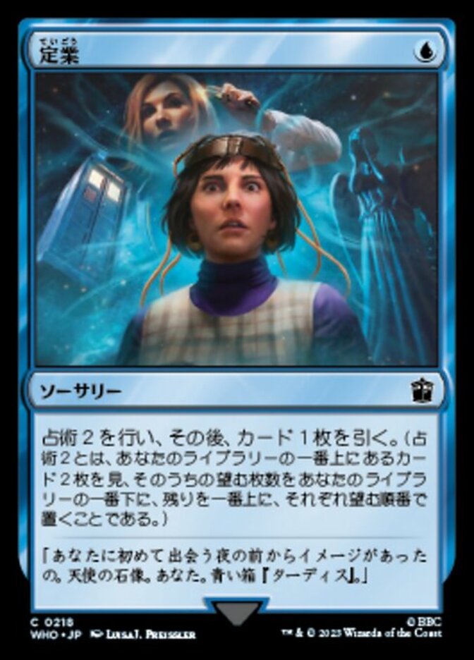| Rules | Scry 2, then draw a card. (To scry 2, look at the top two cards of your library, then put any number of them on the bottom of your library and the rest on top in any order.) |