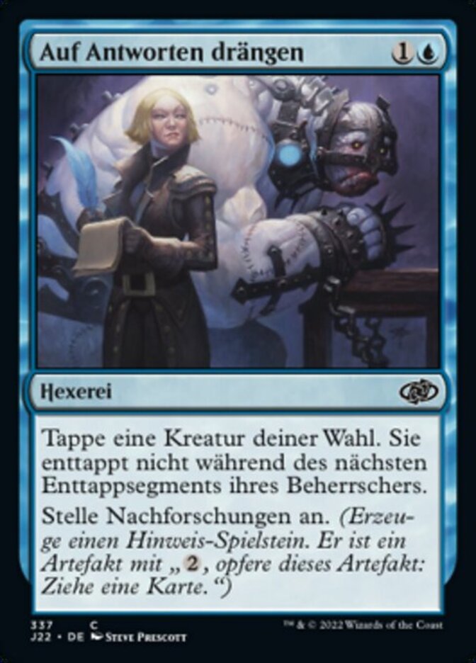 | Rules | Tap target creature. It doesn't untap during its controller's next untap step. Investigate. (Create a colorless Clue artifact token with ", Sacrifice this artifact: Draw a card.") |