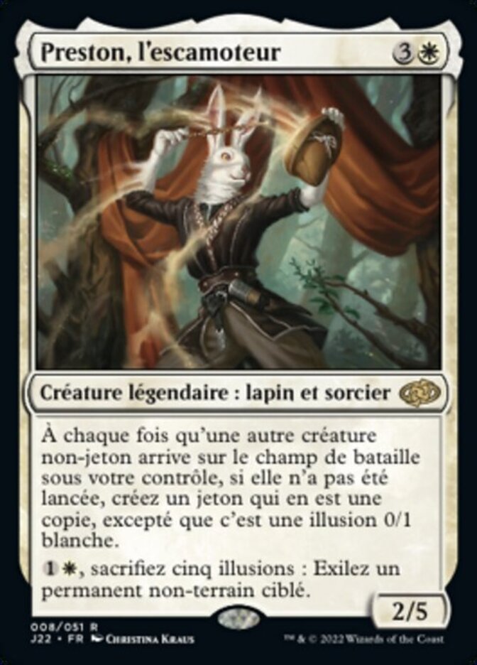 | Rules | Whenever another nontoken creature enters the battlefield under your control, if it wasn't cast, create a token that's a copy of that creature, except it's a 0/1 white Illusion. , Sacrifice five Illusions: Exile target nonland permanent. |