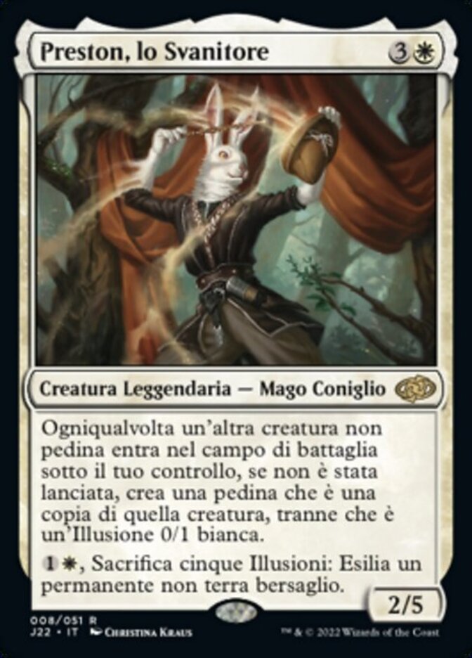 | Rules | Whenever another nontoken creature enters the battlefield under your control, if it wasn't cast, create a token that's a copy of that creature, except it's a 0/1 white Illusion. , Sacrifice five Illusions: Exile target nonland permanent. |