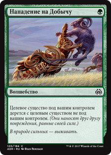 | Rules | Target creature you control fights target creature you don't control. (Each deals damage equal to its power to the other.) |