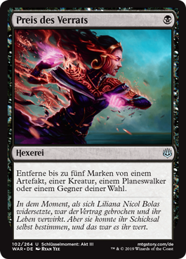 Flavor The moment Liliana defied Nicol Bolas, her contract was broken, and her life was forfeit. But she was free to choose her fate, and she decided it was worth the price.