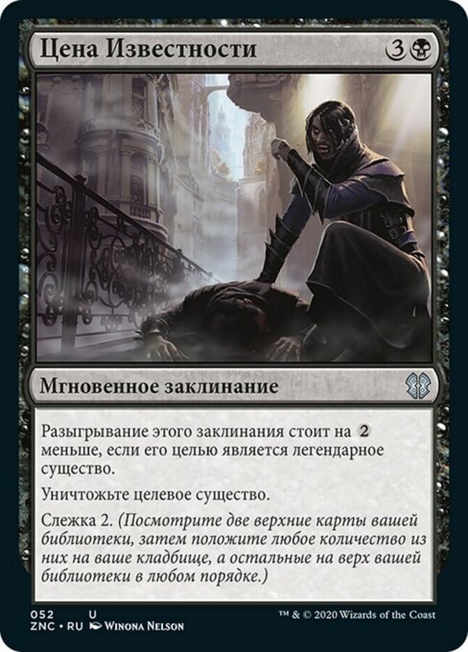 | Rules | This spell costs less to cast if it targets a legendary creature. Destroy target creature. Surveil 2. (Look at the top two cards of your library, then put any number of them into your graveyard and the rest on top of your library in any order.) |