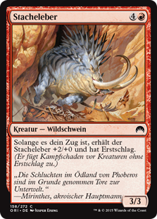 | Rules | As long as it's your turn, Prickleboar gets +2/+0 and has first strike. (It deals combat damage before creatures without first strike.) |