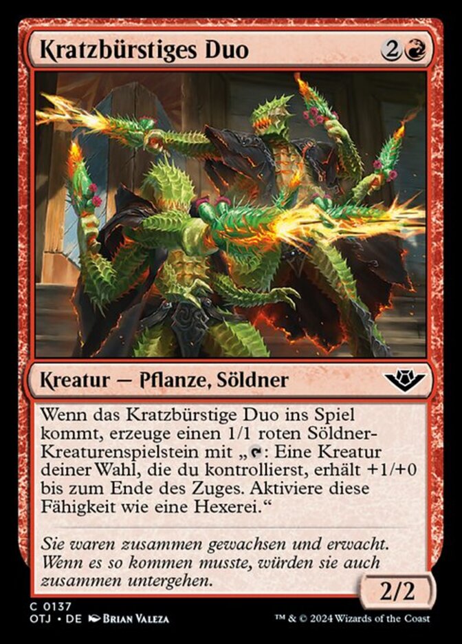 | Rules | When Prickly Pair enters the battlefield, create a 1/1 red Mercenary creature token with ": Target creature you control gets +1/+0 until end of turn. Activate only as a sorcery." |