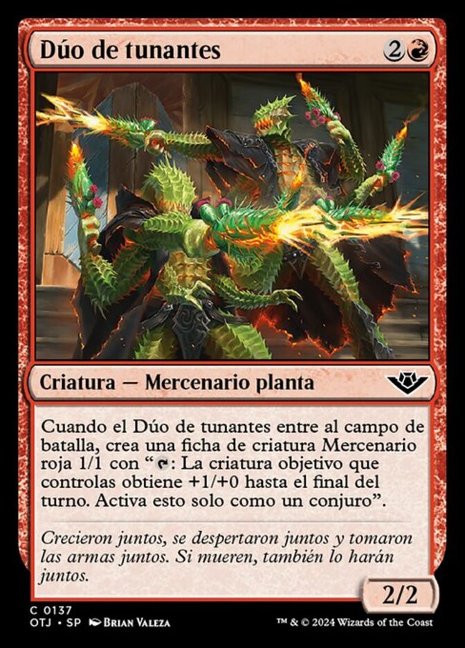 | Rules | When Prickly Pair enters the battlefield, create a 1/1 red Mercenary creature token with ": Target creature you control gets +1/+0 until end of turn. Activate only as a sorcery." |
