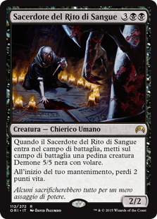 | Rules | When Priest of the Blood Rite enters the battlefield, create a 5/5 black Demon creature token with flying. At the beginning of your upkeep, you lose 2 life. |