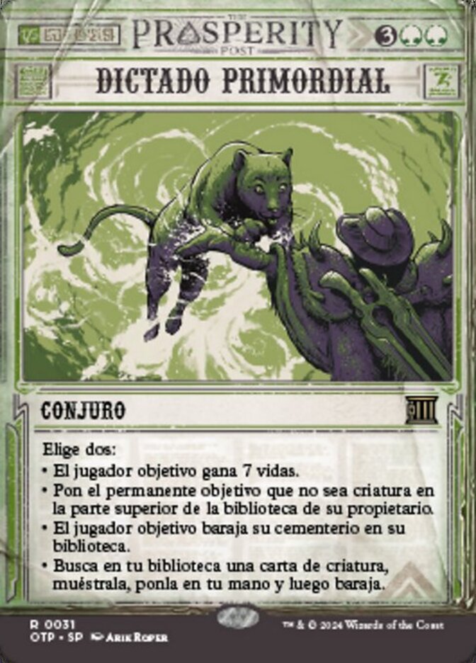 | Rules | Choose two — • Target player gains 7 life. • Put target noncreature permanent on top of its owner's library. • Target player shuffles their graveyard into their library. • Search your library for a creature card, reveal it, put it into your hand, then shuffle. |