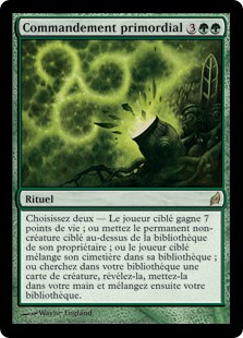 | Rules | Choose two — • Target player gains 7 life. • Put target noncreature permanent on top of its owner's library. • Target player shuffles their graveyard into their library. • Search your library for a creature card, reveal it, put it into your hand, then shuffle. |