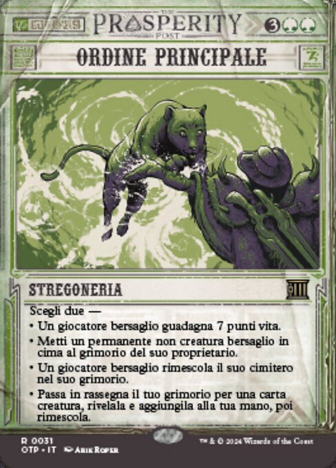 | Rules | Choose two — • Target player gains 7 life. • Put target noncreature permanent on top of its owner's library. • Target player shuffles their graveyard into their library. • Search your library for a creature card, reveal it, put it into your hand, then shuffle. |