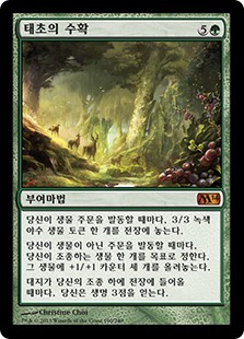 | Rules | Whenever you cast a creature spell, create a 3/3 green Beast creature token. Whenever you cast a noncreature spell, put three +1/+1 counters on target creature you control. Whenever a land enters the battlefield under your control, you gain 3 life. |