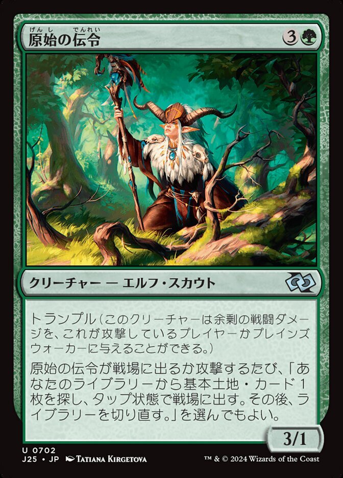 | Rules | Trample Whenever Primeval Herald enters the battlefield or attacks, you may search your library for a basic land card, put it onto the battlefield tapped, then shuffle. |