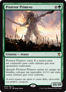 | Rules | This spell costs less to cast for each creature your opponents control. When Primeval Protector enters the battlefield, put a +1/+1 counter on each other creature you control. |