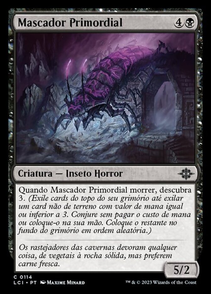 | Rules | When Primordial Gnawer dies, discover 3. (Exile cards from the top of your library until you exile a nonland card with mana value 3 or less. Cast it without paying its mana cost or put it into your hand. Put the rest on the bottom in a random order.) |