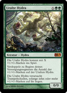 | Rules | Primordial Hydra enters the battlefield with X +1/+1 counters on it. At the beginning of your upkeep, double the number of +1/+1 counters on Primordial Hydra. Primordial Hydra has trample as long as it has ten or more +1/+1 counters on it. |