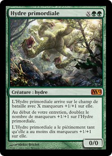 | Rules | Primordial Hydra enters the battlefield with X +1/+1 counters on it. At the beginning of your upkeep, double the number of +1/+1 counters on Primordial Hydra. Primordial Hydra has trample as long as it has ten or more +1/+1 counters on it. |