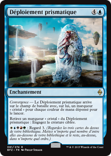 | Rules | Converge — Prism Array enters the battlefield with a crystal counter on it for each color of mana spent to cast it. Remove a crystal counter from Prism Array: Tap target creature. : Scry 3. (Look at the top three cards of your library, then put any number of them on the bottom of your library and the rest on top in any order.) |
