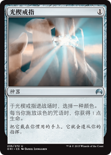 | Rules | As Prism Ring enters the battlefield, choose a color. Whenever you cast a spell of the chosen color, you gain 1 life. |