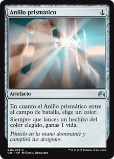 | Rules | As Prism Ring enters the battlefield, choose a color. Whenever you cast a spell of the chosen color, you gain 1 life. |