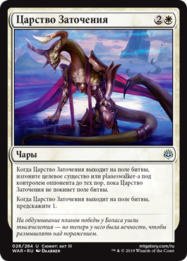 | Rules | When Prison Realm enters the battlefield, exile target creature or planeswalker an opponent controls until Prison Realm leaves the battlefield. When Prison Realm enters the battlefield, scry 1. |